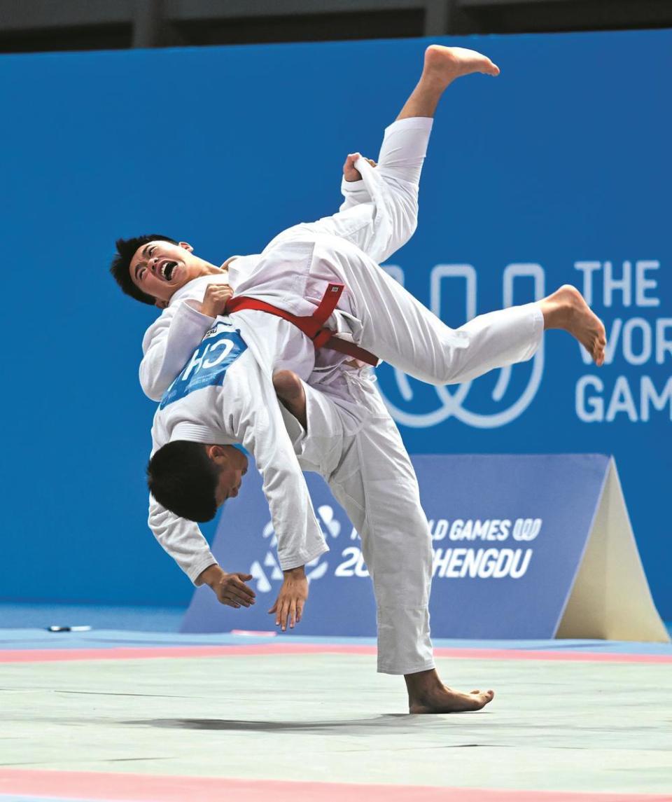 12日,世运会柔术比赛进入收官战。在肢体残疾混合双人柔术决赛中,凭借过硬的实力和顽强的拼搏,中国选手李雨财、郭奥这对四川组合以167∶162的比分险胜德国队,为中国代表团再添一枚宝贵的金牌。这也是中国代表团在柔术项目中获得的首金。